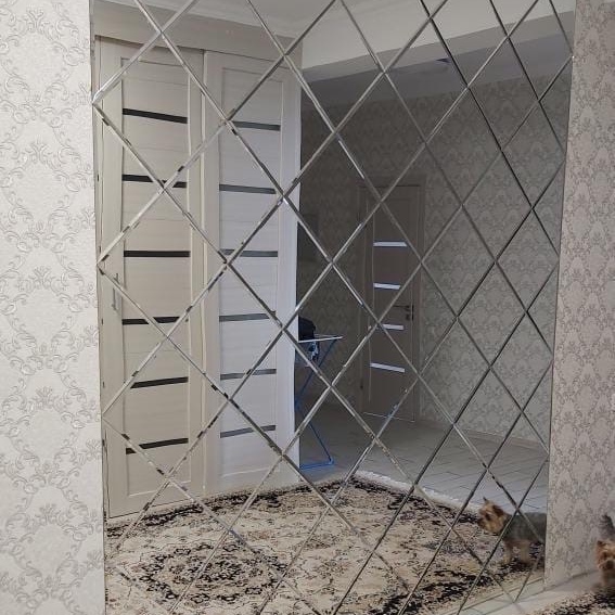 Использована серебристая зеркальная плитка "вытянутый ромб".